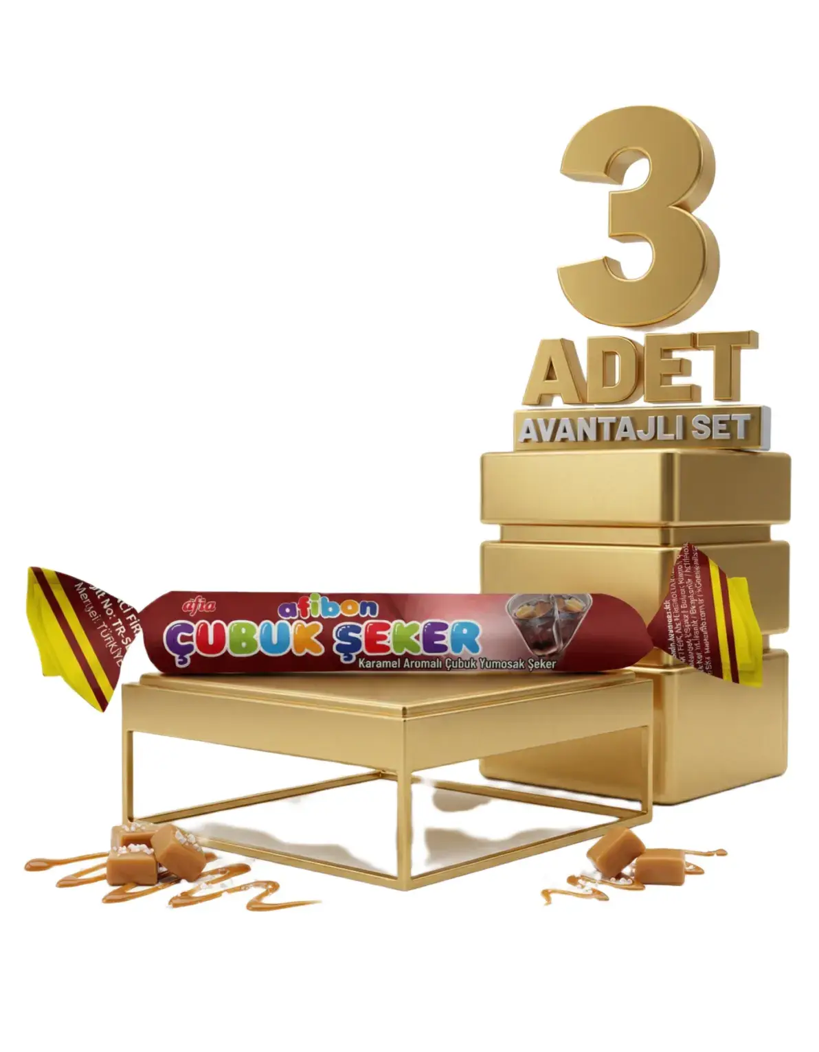 | Paket İçeriği | 3 Adet Afia Afibon Karamelli Çubuk Şeker 6,7 Gr |