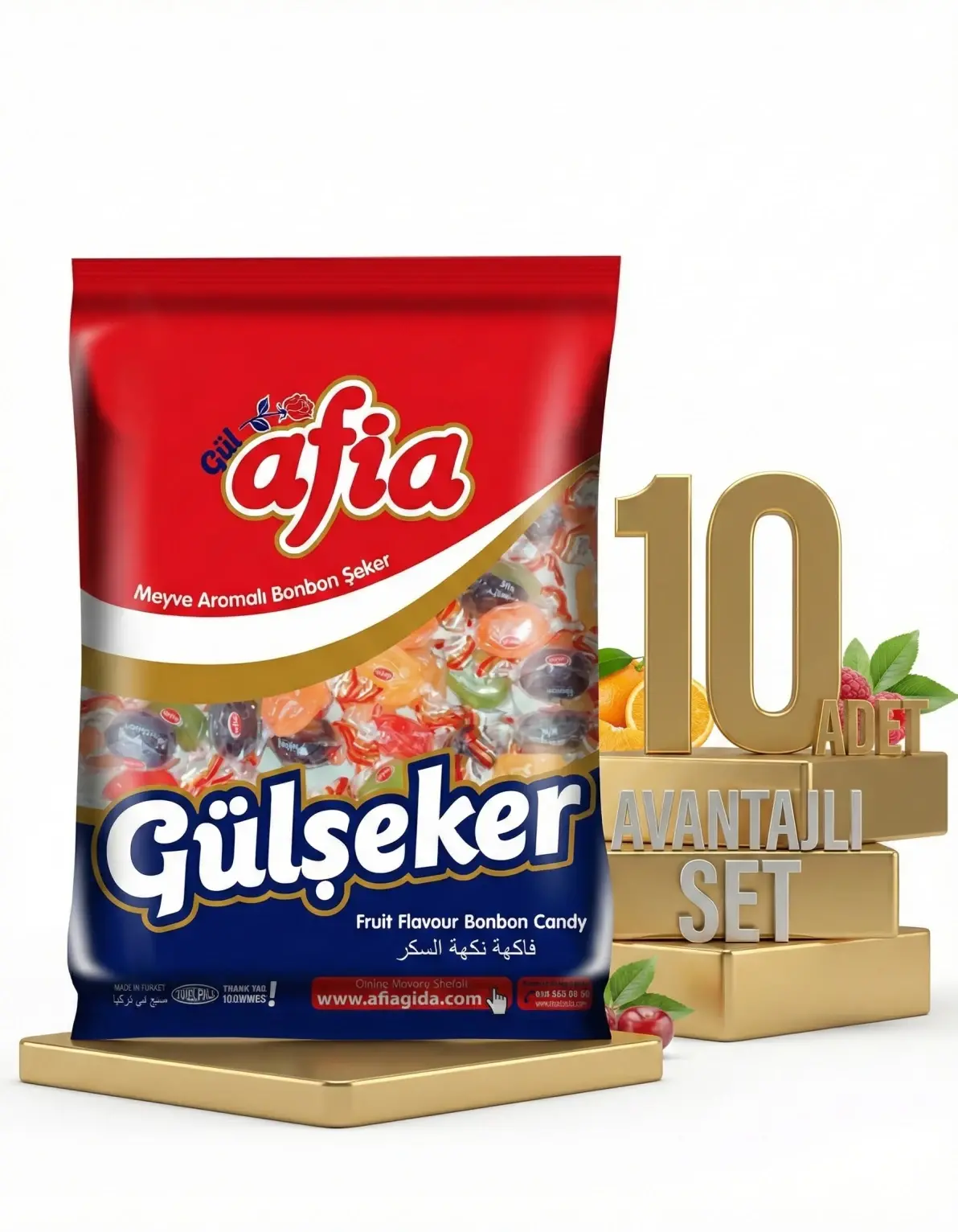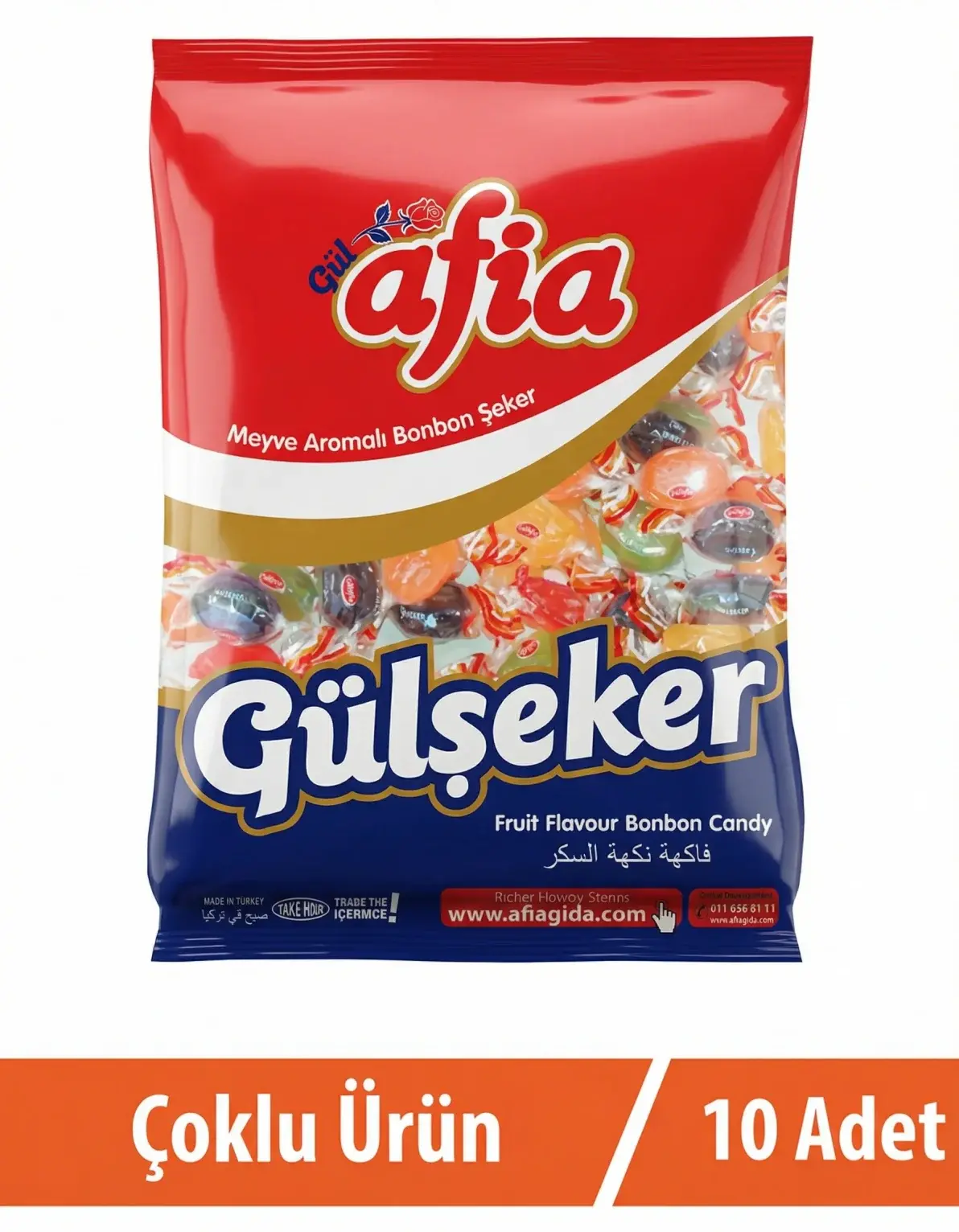 | Paket İçeriği | 10 Adet Afia Gülşeker Karışık Meyve Aromalı Şeker 175 Gr |