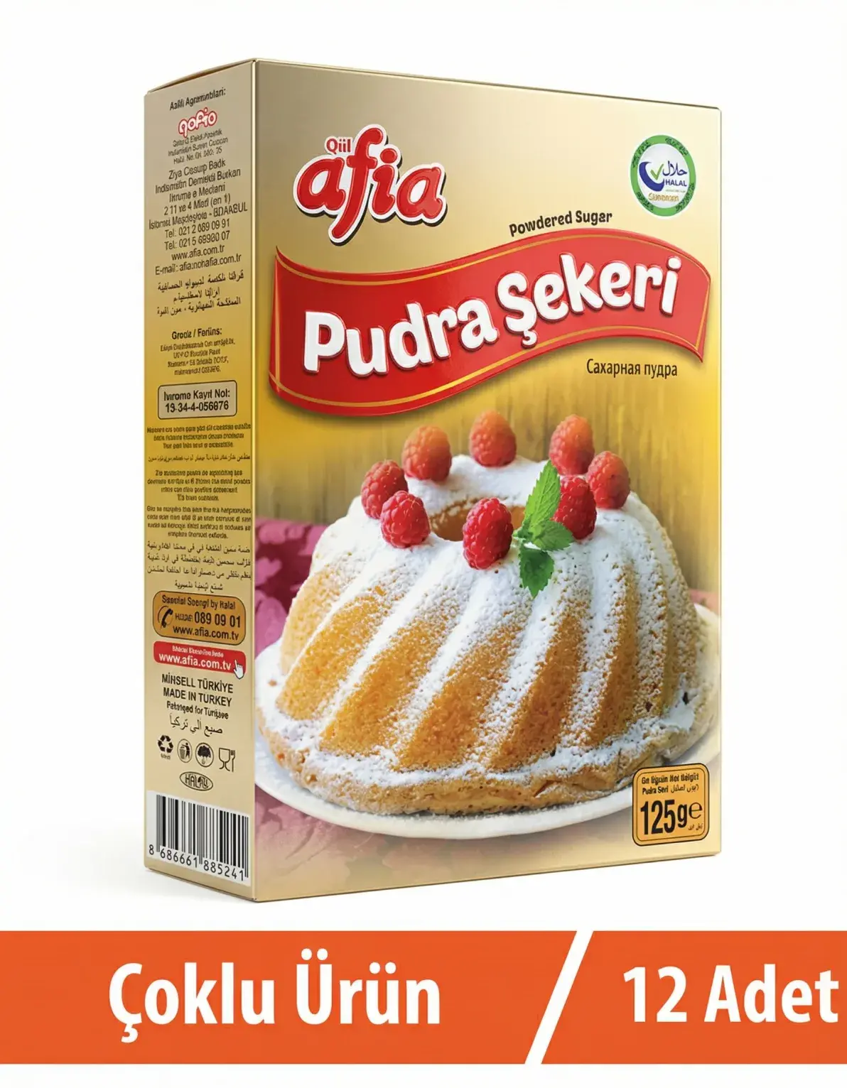 | Paket İçeriği | 12 Adet Afia Pudra Şekeri 125 Gr |