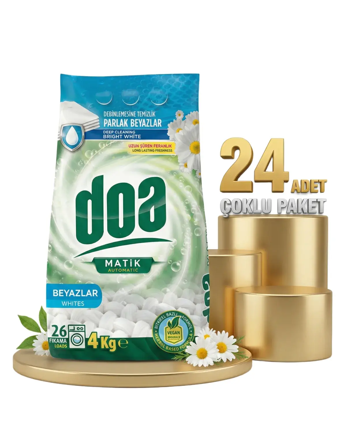 | Paket İçeriği | 24 Adet Doa Matik Deterjan Beyazlar 4 Kg |