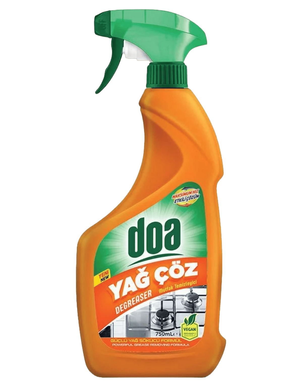 Doa Yağ Çözücü 750 Ml, özel geliştirilmiş formülü ile yağ ve inatçı kir kalıntılarını hızla temizlemek için etkili bir çözümdür. Ocak, fırın, aspiratör ve davlumbaz gibi yüzeylerde oluşan zorlu lekeleri kolaylıkla çıkararak mutfağınızda derinlemesine temizlik sunar.