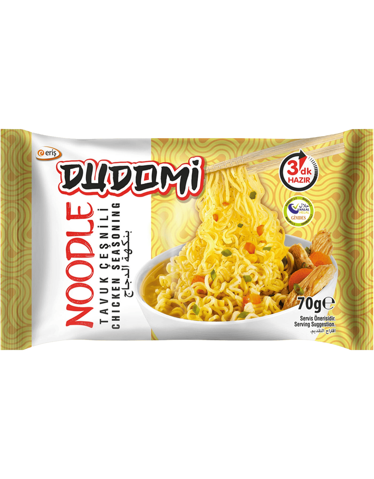 Dudomi Tavuk Çeşnili Noodle ürününde yapay koruyucu, renklendirici ve kimyasal lezzet arttırıcı MSG (Monosodyum Glutamat) yani Çin Tuzu gibi katkılar yer almamaktadır.