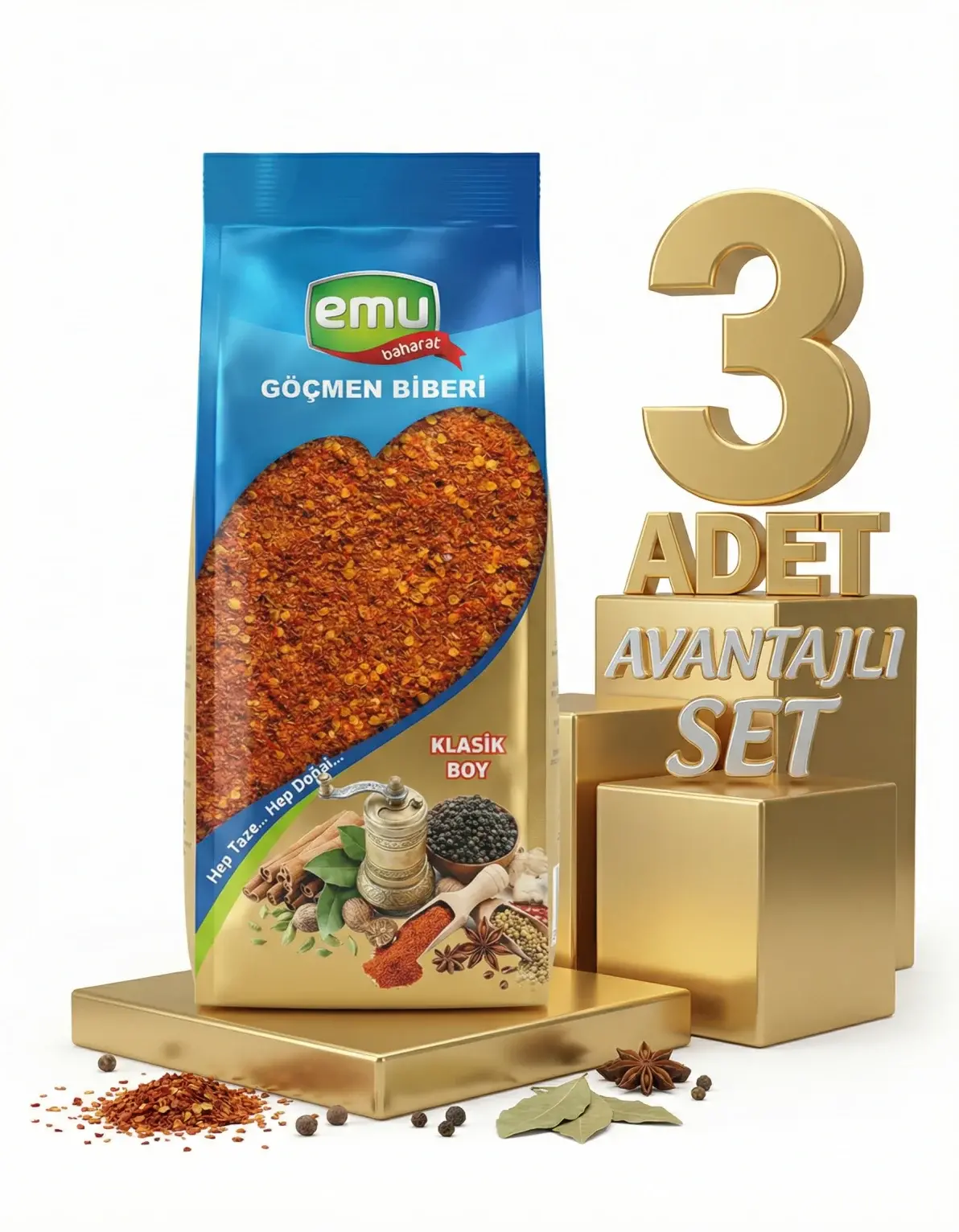 | Paket İçeriği | 3 x Emu Göçmen Acı Pul Biber 40 Gr |