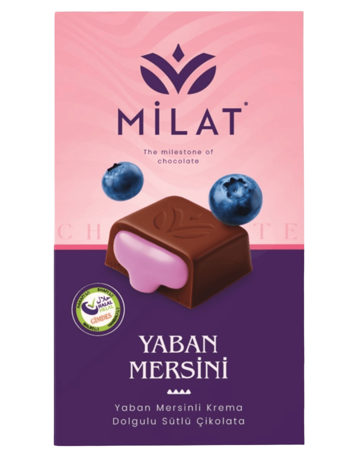 Milat Premium Yaban Mersini Dolgulu Sütlü Çikolata, gerçek meyve püresi ve kaliteli sütlü çikolatanın birleşimiyle hem lezzet hem de sağlıklı atıştırmalık arayanlar için ideal bir seçenek sunar. Katkısız içeriği ve pratik ambalajıyla günlük tüketim için uygundur.