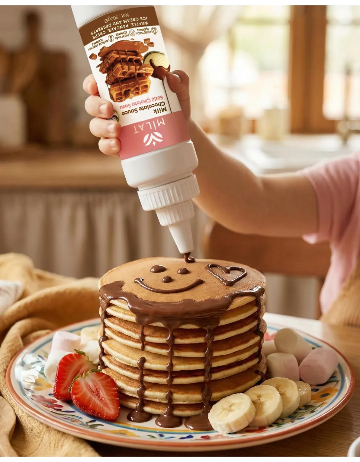 Waffle, krep, pankek ve dondurma gibi çeşitli tatlılarda ideal tamamlayıcıdır.