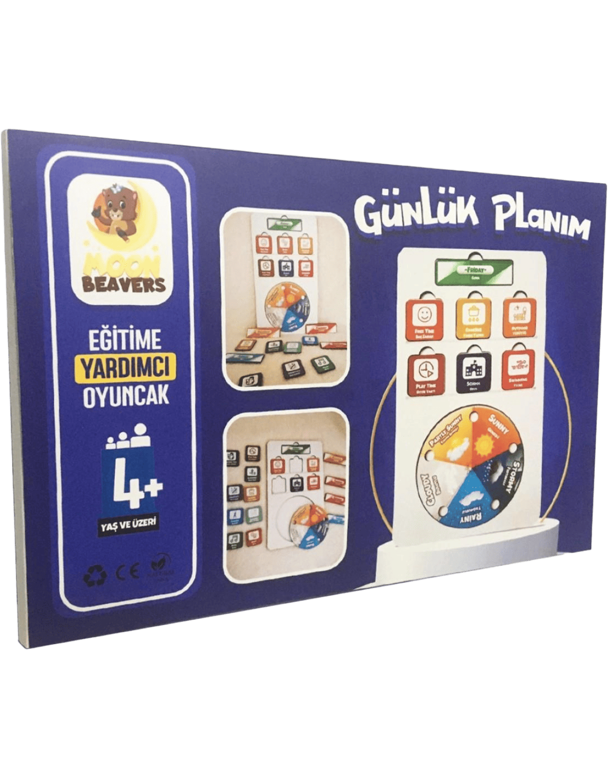 Moonbeavers Günlük Planım, çocukların zaman yönetimi ve sorumluluk bilincini geliştirmede faydalı bir eğitim aracıdır. Sağlıklı malzemesi ve Montessori uyumlu yapısıyla ebeveynlerin tercih edebileceği kalitede bir ürün sunar.