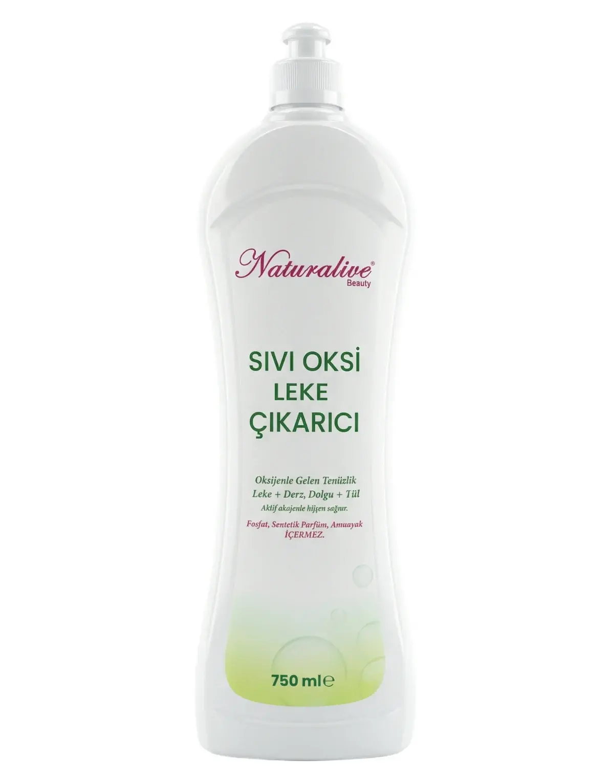 Naturalive Oksi Sıvı Leke Çıkarıcı, oksijen bazlı formülü sayesinde inatçı lekeleri etkili şekilde çıkarır. Beyaz çamaşırlarda sararmayı önleyerek parlaklık sağlar ve çamaşır suyu ya da klor içermez. Doğal, vegan ve bitkisel içerikleri ile cilde ve çevreye zarar vermez. Çamaşır makinesi, bulaşık makinesi, ev yüzeyleri ve tül perdelerde kullanılabilir. Türkiye'de yerli üretimdir.