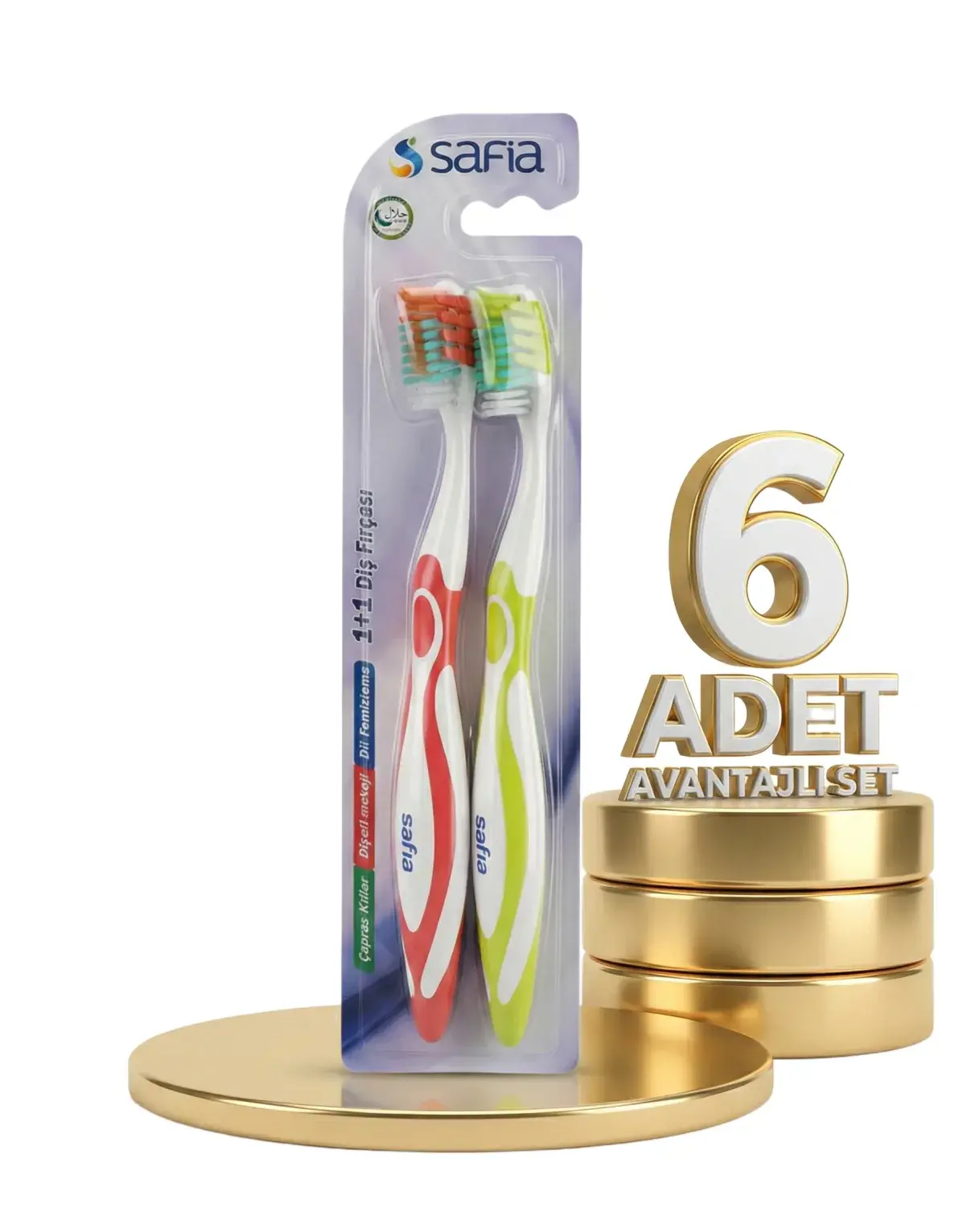 | Paket İçeriği | 6 Adet Safia 1+1 Yetişkin Diş Fırçası |