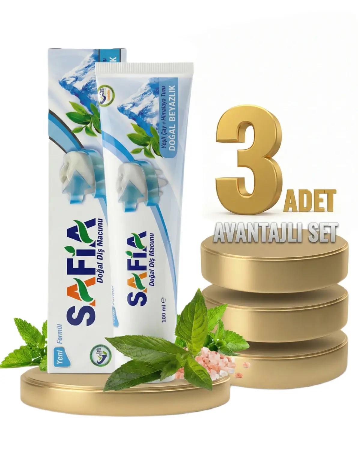| Paket İçeriği | 3 Adet Safia Diş Macunu Yeşil Çay ve Himalaya Tuzu 100 ml |