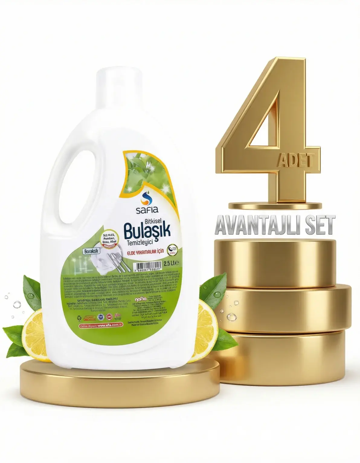 | Paket İçeriği | 4 x 2,5 Lt Safia Elde Bulaşık Temizleyicisi |