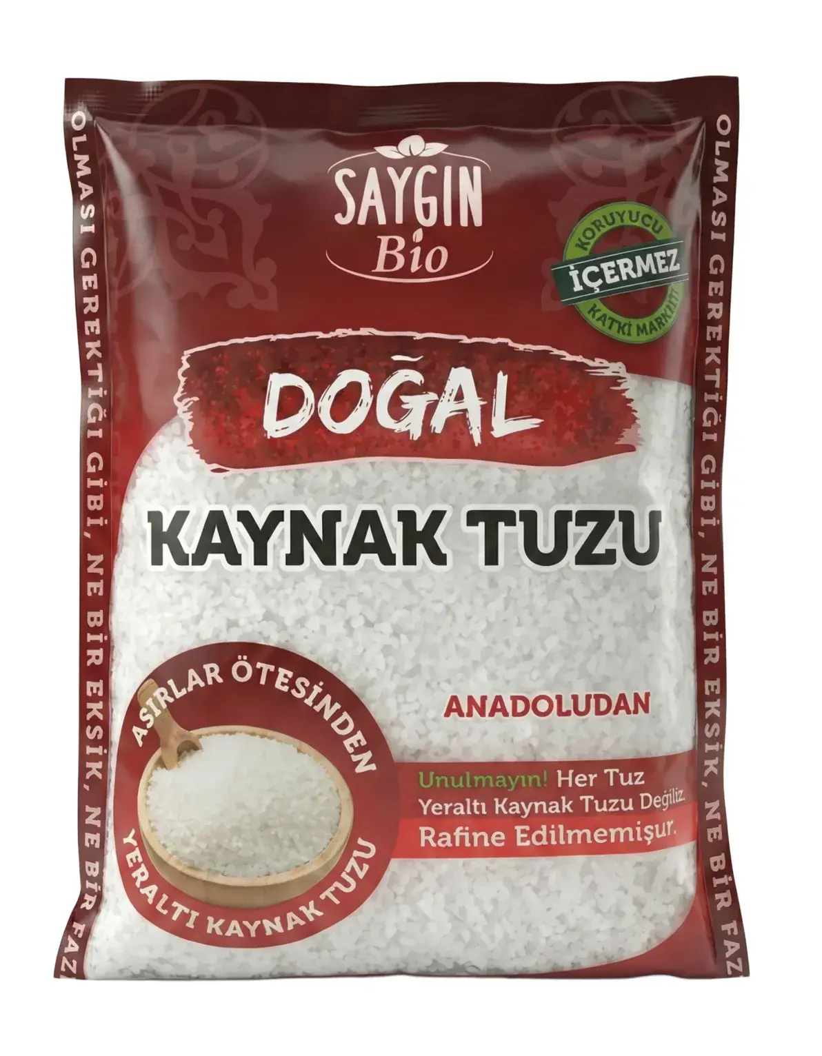 Saygın Anadolu Derin Yeraltı Kaynak Tuzu, Anadolu bölgesine özgü doğal yeraltı kaynaklarından elde edilen katkısız ve rafine edilmemiş bir tuzdur. Mineral zengin içeriğiyle (kalsiyum, magnezyum, potasyum) besinlerin lezzetini artırır. Yumuşak yapısı sayesinde öğütmeden doğrudan kullanıma uygundur ve herhangi bir kimyasal işlemden geçmez. Doğal yapısı nedeniyle sağlıklı beslenme ve yemeklerde doğal tat artırıcı olarak tercih edilir.