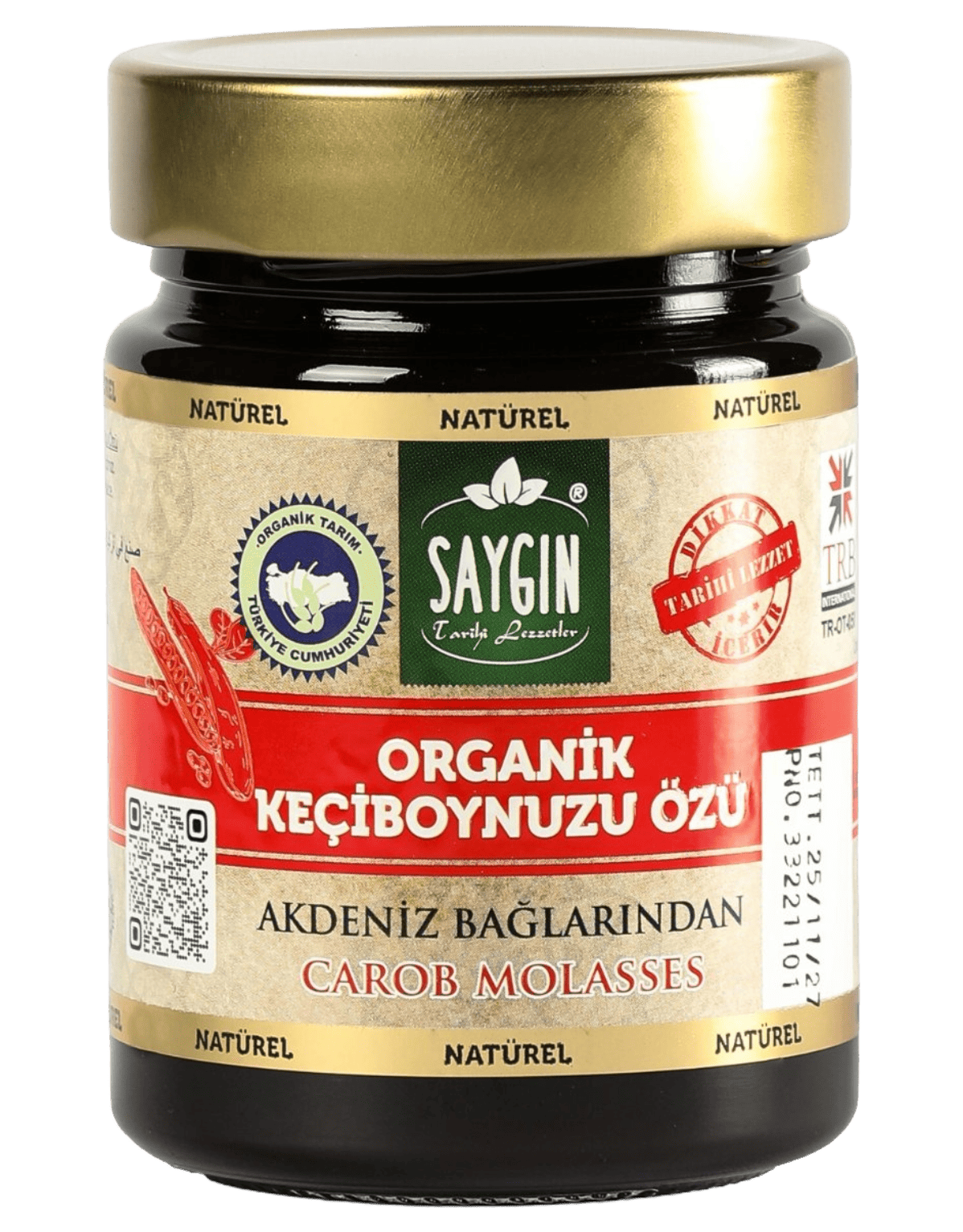 Saygın Organik Keçi Boynuzu Özü, katkı maddesi içermeyen, doğal yöntemlerle üretilmiş besleyici bir gıda ürünüdür. Keçi boynuzu meyvesinden elde edilen bu öz, yoğun kıvamı ve doğal tatlılığı ile sağlıklı beslenmeye katkı sağlar.