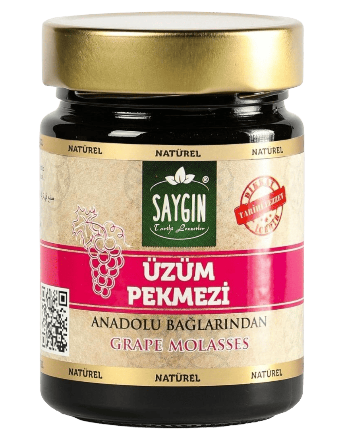Saygın Üzüm Pekmezi, doğal yöntemlerle üretilmiş %100 katkısız üzüm pekmezidir. Tatlandırıcı, renklendirici ve glikoz içermeyen bu ürün, yüksek besin değerine sahiptir. Geleneksel yöntemlerle düşük ısıda uzun süre kaynatılarak elde edilir. Kahvaltılarda tahinle, tatlılarda ve içeceklerde doğal tatlandırıcı olarak kullanılabilir. Türkiye menşelidir ve 400 gramlık ambalajlarda sunulur.