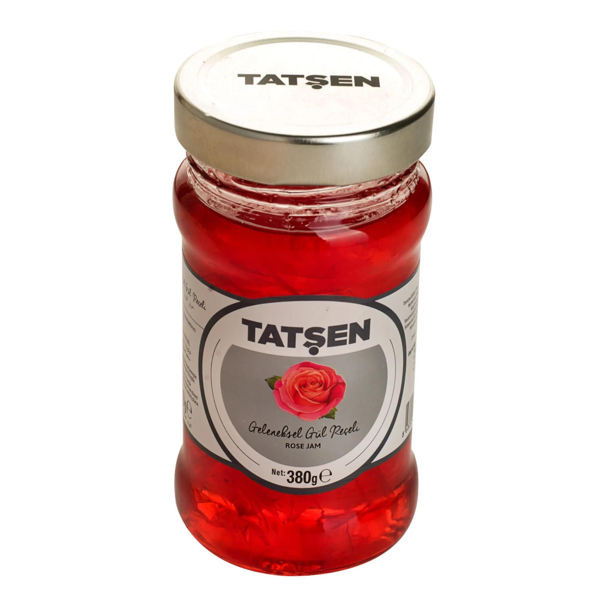 Tatşen Cam Gül Reçeli, özenle seçilmiş gül yapraklarından geleneksel yöntemlerle hazırlanmış, katkı maddesi içermeyen doğal bir reçeldir. 380 gramlık cam kavanozda sunulan bu ürün, kahvaltı sofralarınıza eşsiz bir lezzet katmak için idealdir.