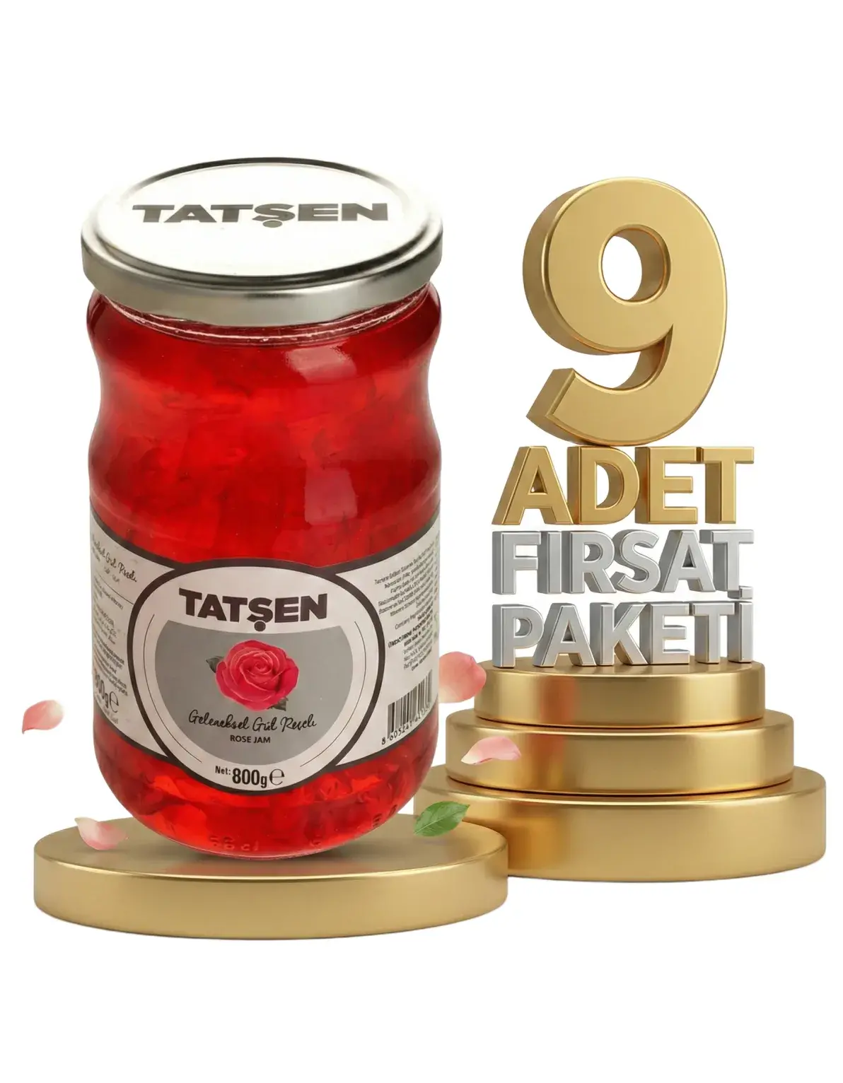 | Paket İçeriği | 9 Adet Tatşen Cam Reçel Gül 800 Gr |