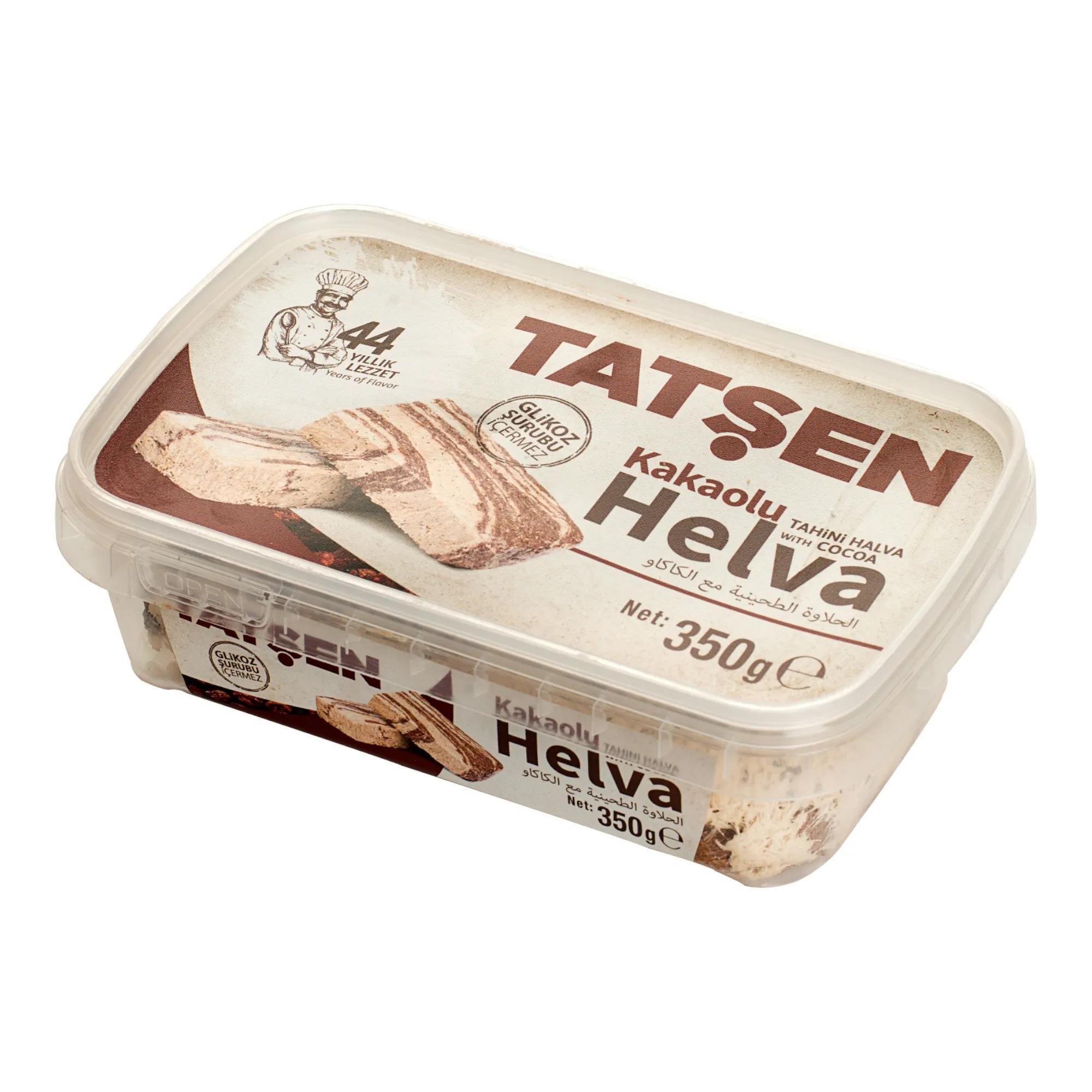 Tatşen Kakaolu Helva, geleneksel yöntemlerle hazırlanmış, yüksek kaliteli tahin ve kakao ile zenginleştirilmiş bir tatlıdır. 350 gramlık ambalajında sunulan bu helva, hem lezzeti hem de besleyici değeriyle sofralarınıza tat katmaktadır.