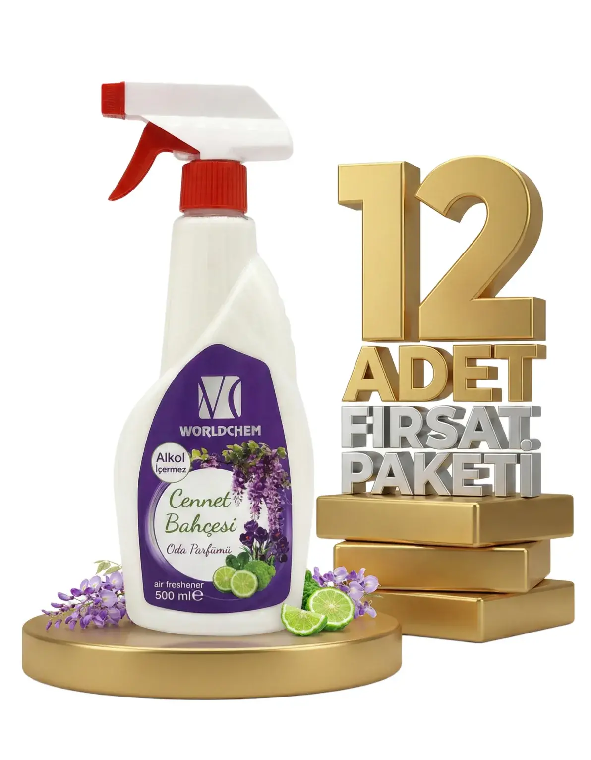 | Paket İçeriği | 12 Adet Worldchem Oda Parfümü Cennet Bahçesi 500 Ml |