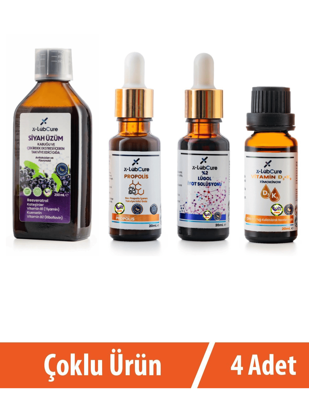 X-LabCure Sağlık Paketi, bağışıklık sistemini desteklemek ve genel sağlığı güçlendirmek için özel olarak hazırlanmış bir üründür. Bu avantajlı paket kapsamında, dört farklı X-LabCure ürünü alındığında, ek olarak X-LabCure Propolis Liquid Ekstrakt 20 ml hediye edilmektedir.