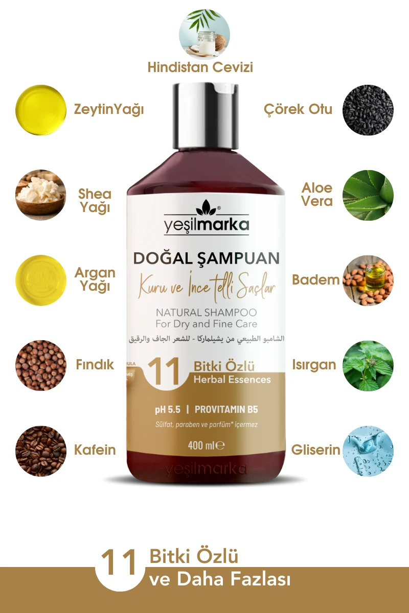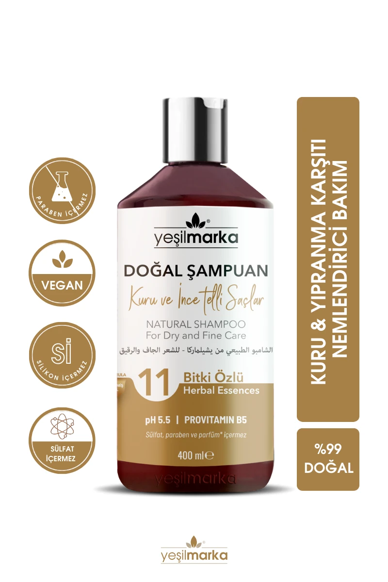 | Ürün Adı | Yeşilmarka 11 Bitki Özlü Kuru ve İnce Telli Saçlar İçin Doğal Şampuan |